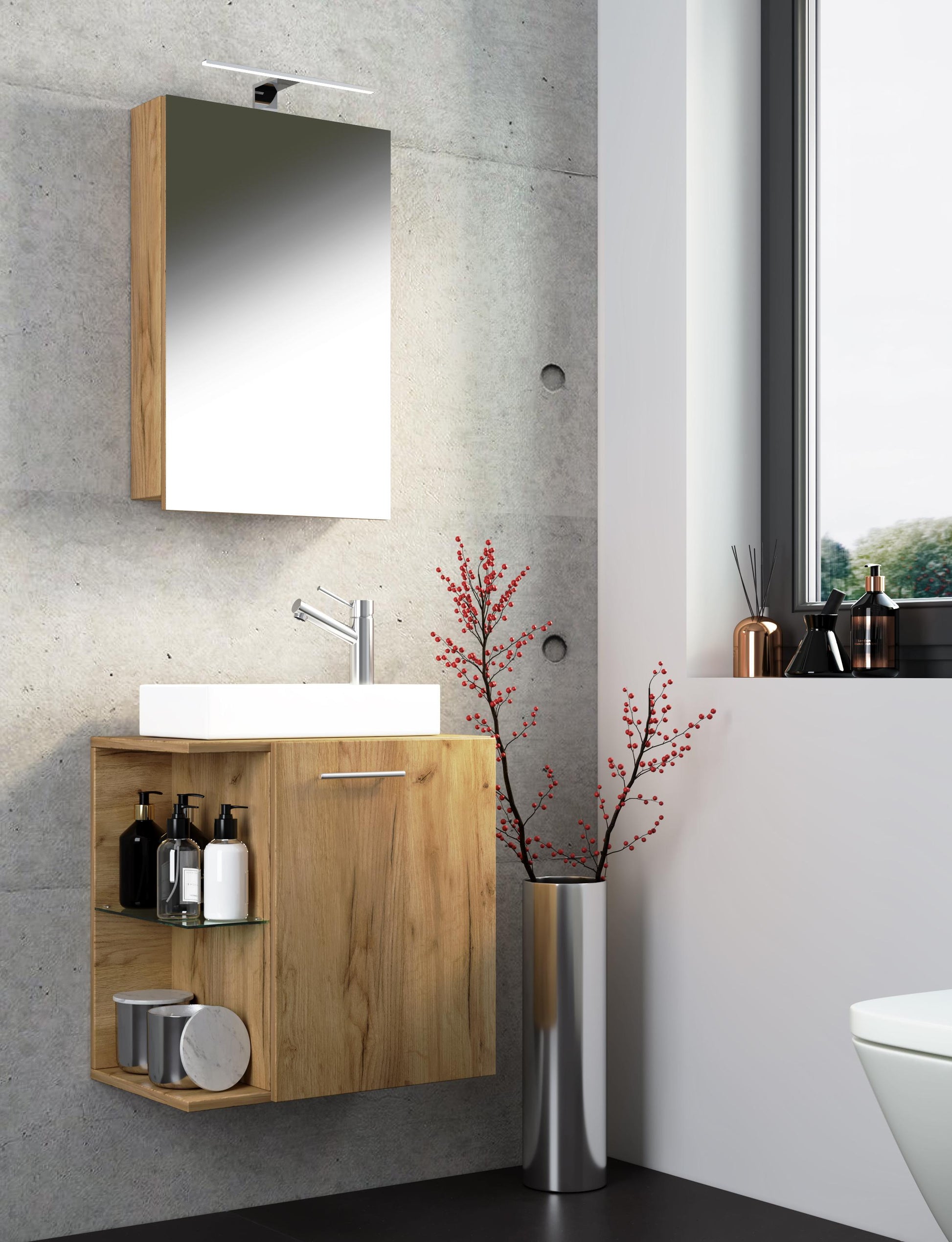 Ensemble Meuble de salle de bain vasque Hausa Chêne miel H. 122 x L. 52 x P. 34 cm