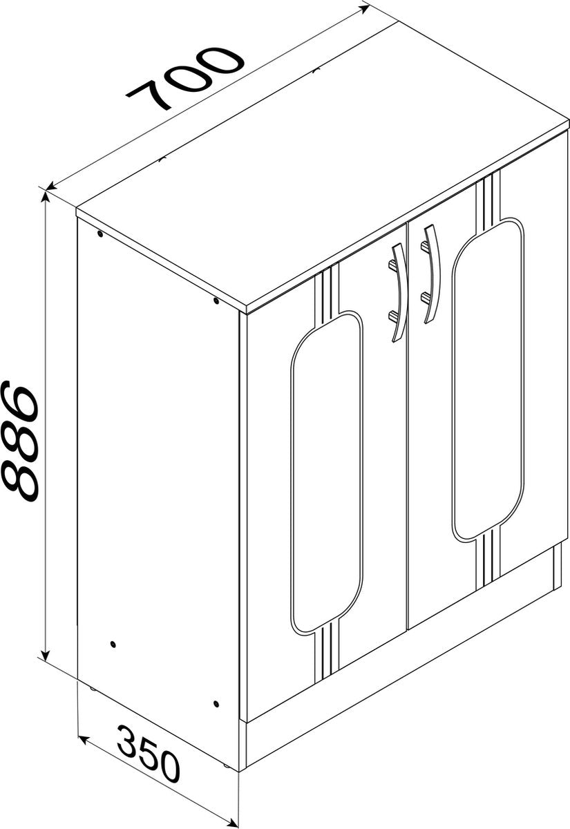 - Dimensions de l'armoire environ H. 89 x L. 70 x P. 35 cm