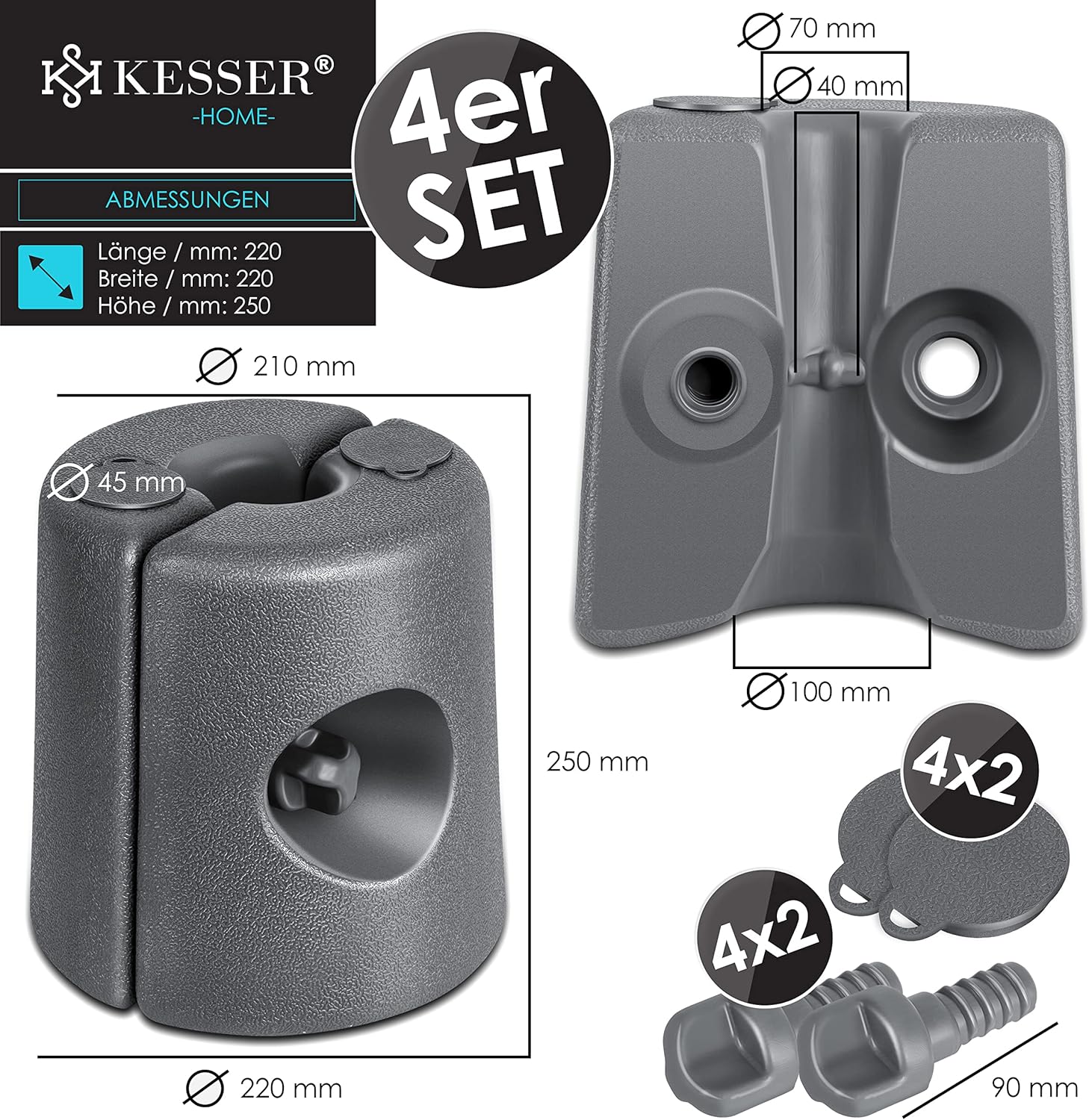 - 𝐌𝐎𝐍𝐓𝐀𝐆𝐄 𝐅𝐀𝐂𝐈𝐋𝐄 : Avec ce système intelligent, vous pouvez fixer les pieds de pavillon KESSER très simplement, en plaçant les deux moitiés d'un pied autour du poteau de pavillon et en les reliant entre elles avec les vis jointes. Les poids de pavillon peuvent être fixés à tous les pavillons traditionnels avec un diamètre de tige de 20 à 40 mm et les maintiennent de manière sûre et ferme.