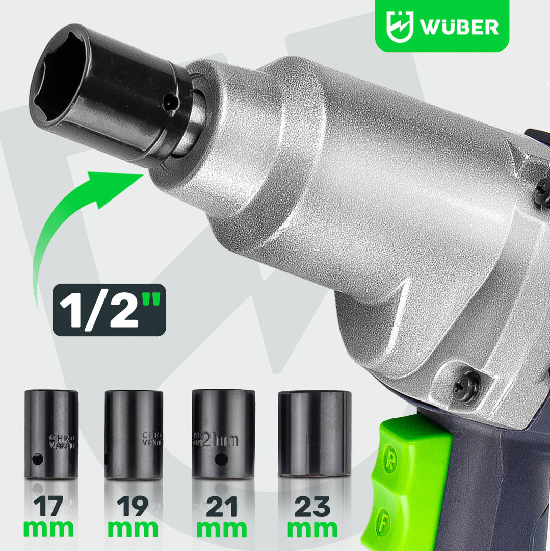 Clé à chocs électrique 1/2" pour roues dans un coffret Wuber